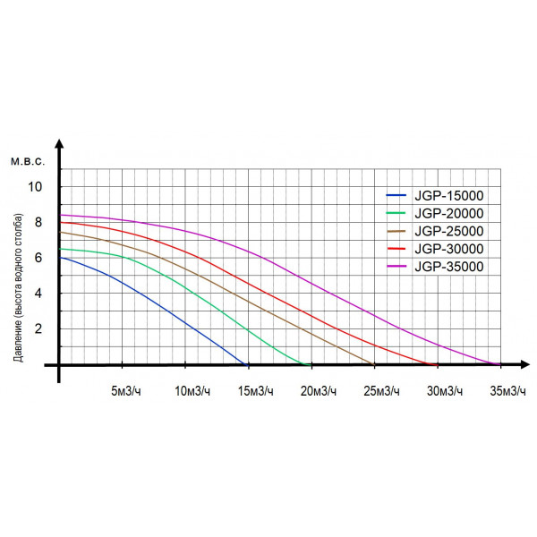 Насос серії JGP рекомендується використовувати для ставків, водоспадів та фонтанів. Насоси забезпечують великий протік води при достатньому напорі ставкової води. Допускається робота насоса із частинками органічного бруду із розміром до 6 мм.
